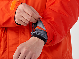 신축성있는 이중 소매와 밑단은 비와 바람의 침투를 막아주는 효과가 있다